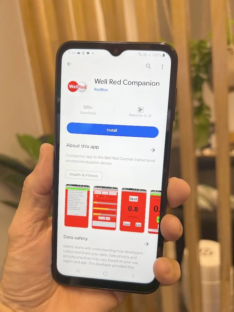 The app is the way we can make changes to the settings (location of lights, wavelengths, power, duration), for people whose medical conditions or age require a non-standard light setting.